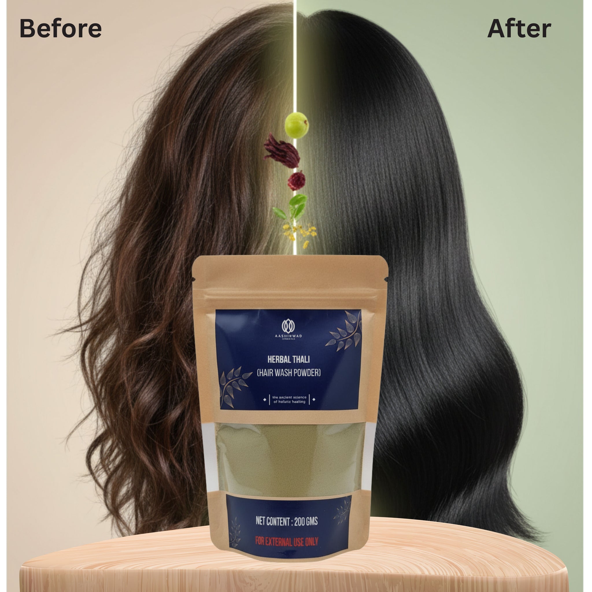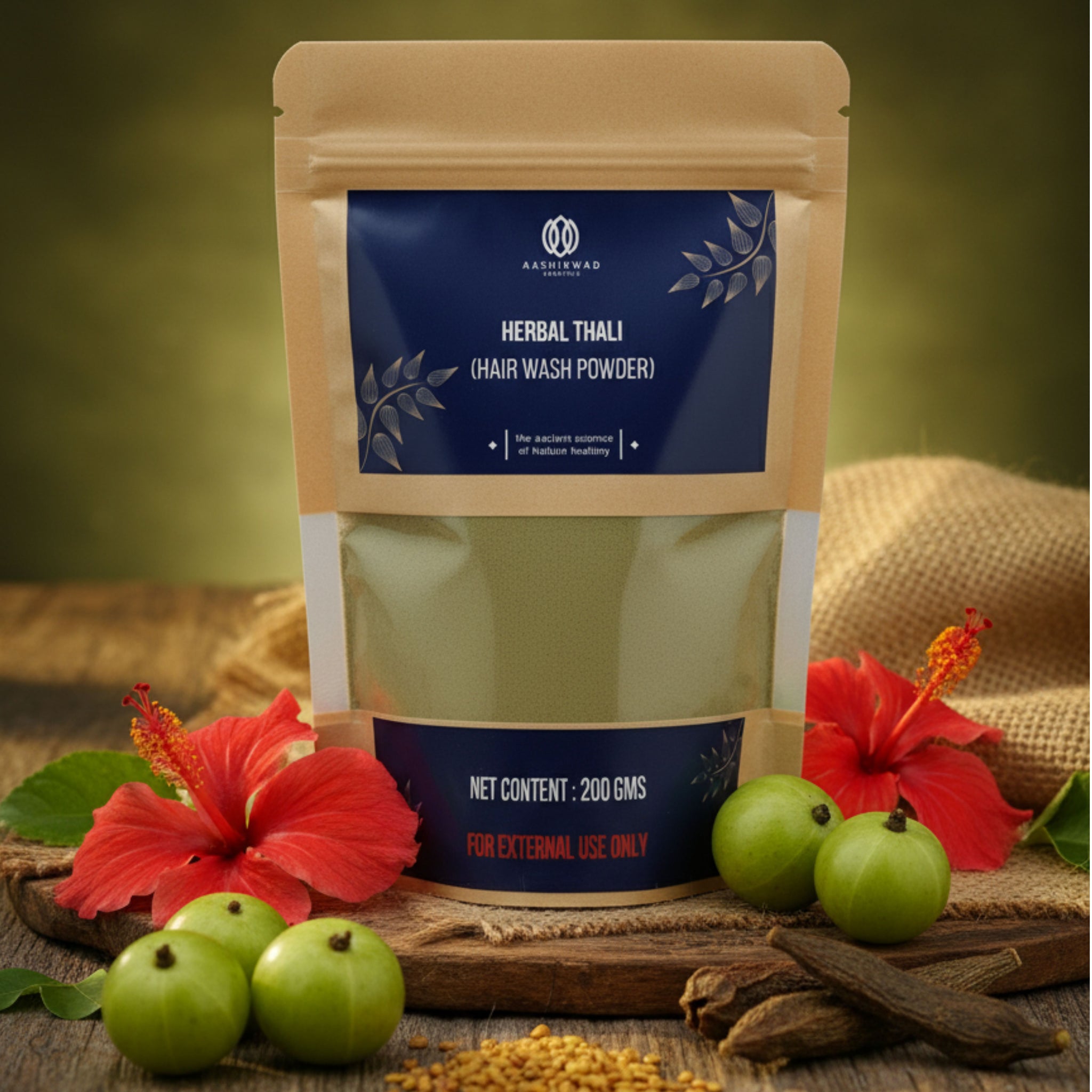 Bring home the age-old wisdom of Ayurveda with Herbal Thali Hair Wash Powder – a 100% natural herbal blend that gently cleanses, strengthens, and nourishes your hair. Crafted with 8 authentic Ayurvedic herbs, Herbal Thali is your chemical-free alternative to shampoos.